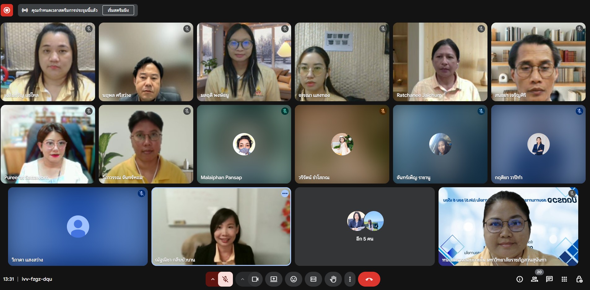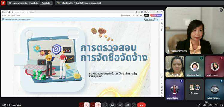 On Monday, July 21, 2025 at 1:30 p.m., Dr. Natnichar Kleep Buabarn, Head of the Internal Audit Unit, gave an opening speech for the inspection of procurement and contracting, together with the Director of the Office of the President, the Director of the Division, and relevant personnel via the Google Meet online system.
