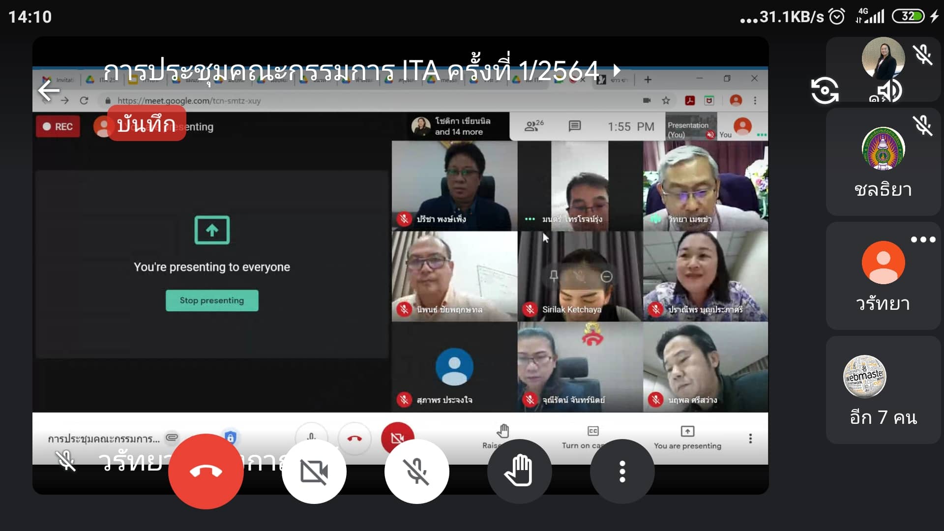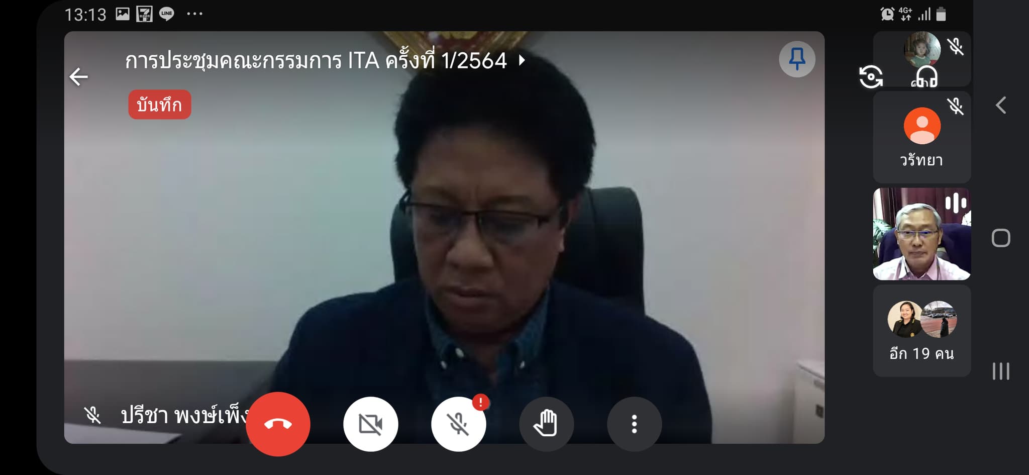 Thursday, January 21, 2021, at 1:00 p.m. Mrs. Praneepoon Boonprapasri and Ms. Suthunya Putta attended the meeting of the Operational Moral and Operational Transparency Assessment (ITA) Committee meeting via the Google Meet system.