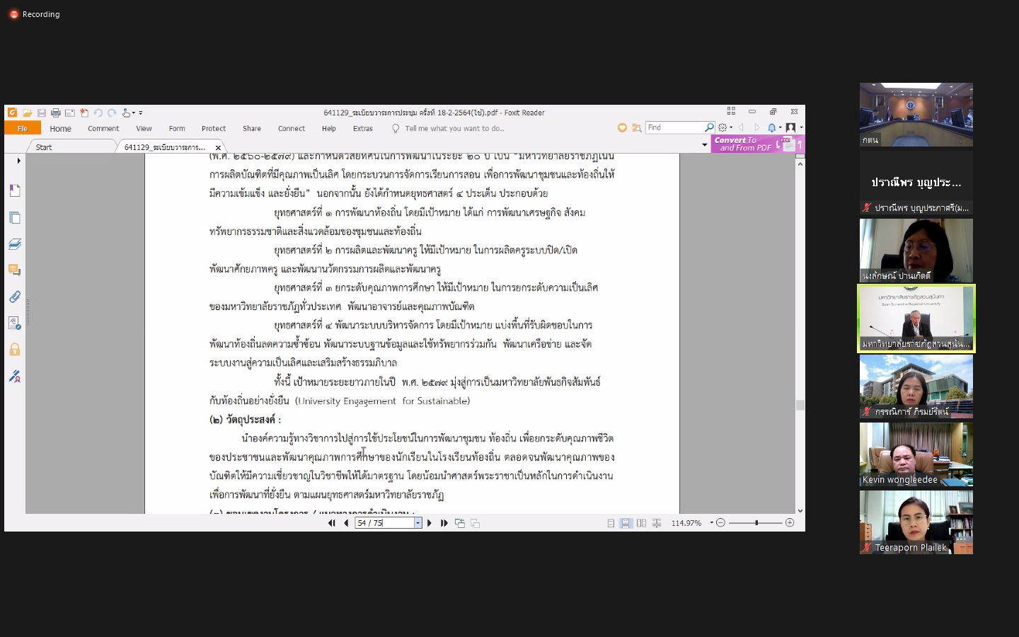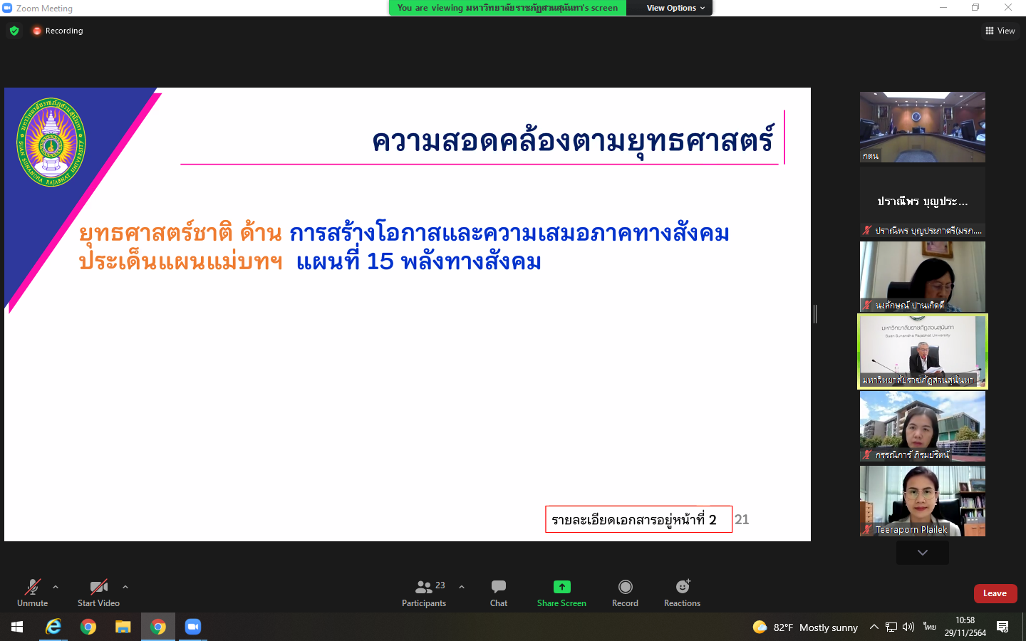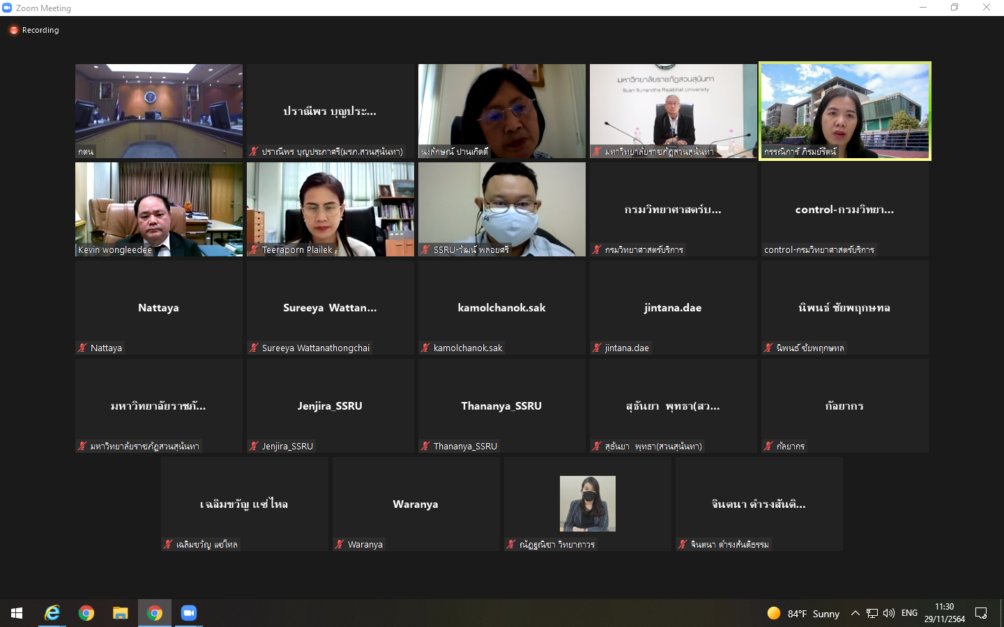Monday 29 November 2021 Mrs. Praneepohn Boonpraphasri Head of Internal Audit Miss Suthanya Puttha and Miss Chalermkwan Saelai, Internal Auditors Attending the Ministry's Audit and Evaluation Committee meeting through online meetings Zoom program.