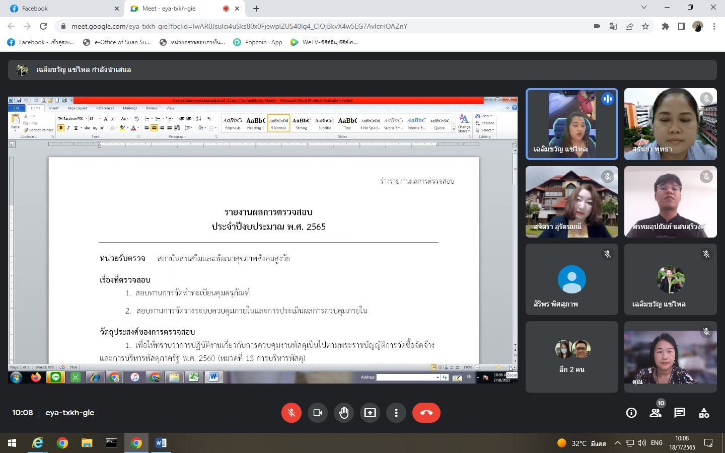 Monday, July 18, 2022 at 10:00 a.m. The Internal Audit Unit held a meeting to close the examination of the Institute for Health Promotion and Development for the Elderly Society via Google Meet online meetings.