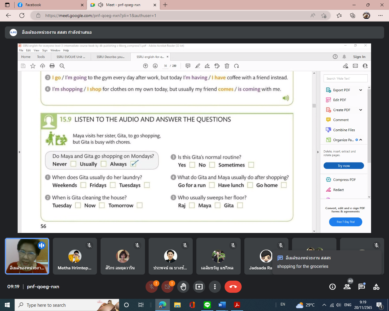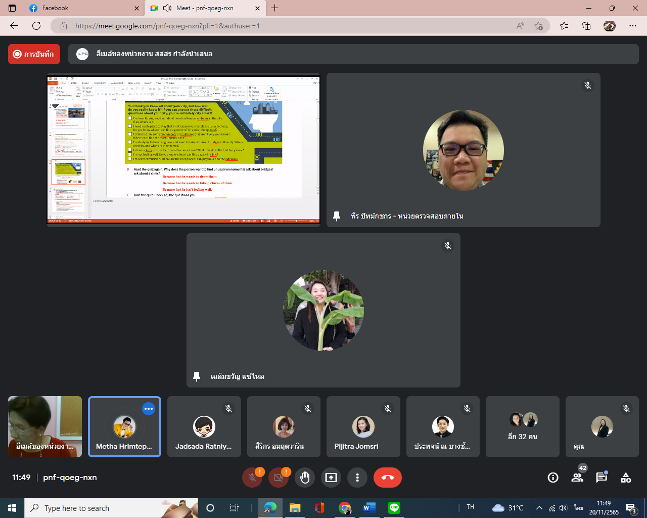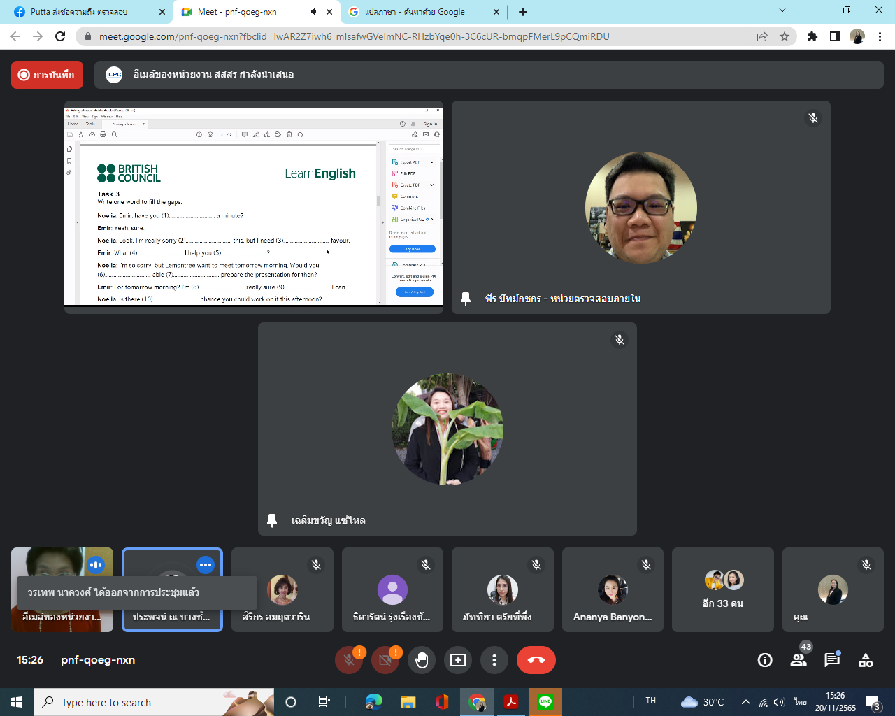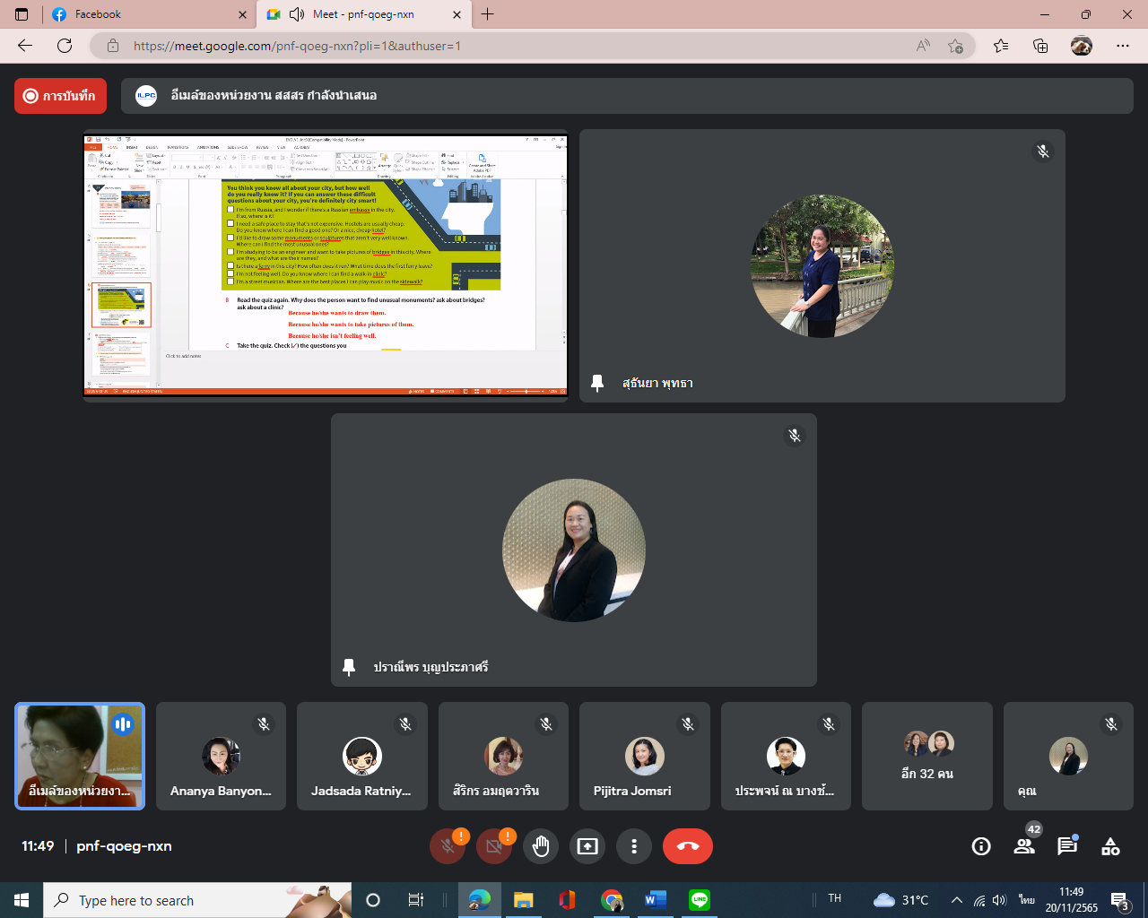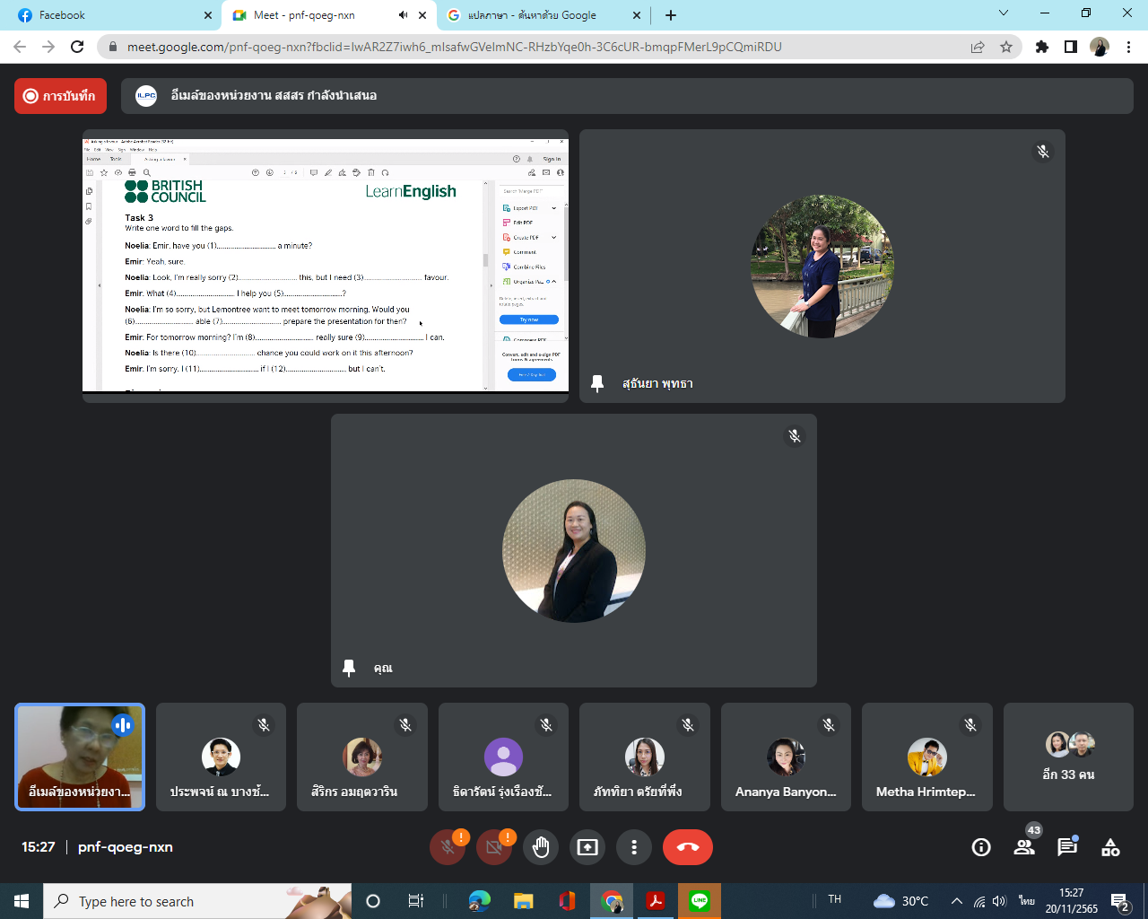 Sunday, November 20, 2022, from 9:00 a.m. to 4:00 p.m. Internal Audit personnel participate in the English for Creative Communication training program. For personnel of Suan Sunandha Rajabhat University taught by Dr. Wilaijit Nilsawat.