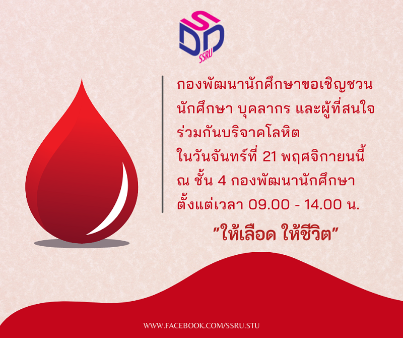 Monday, November 21, 2022, internal audit personnel Donate blood at the Student Development Division, 4th floor, Health and Sports Center Building Suan Sunandha Rajabhat University.