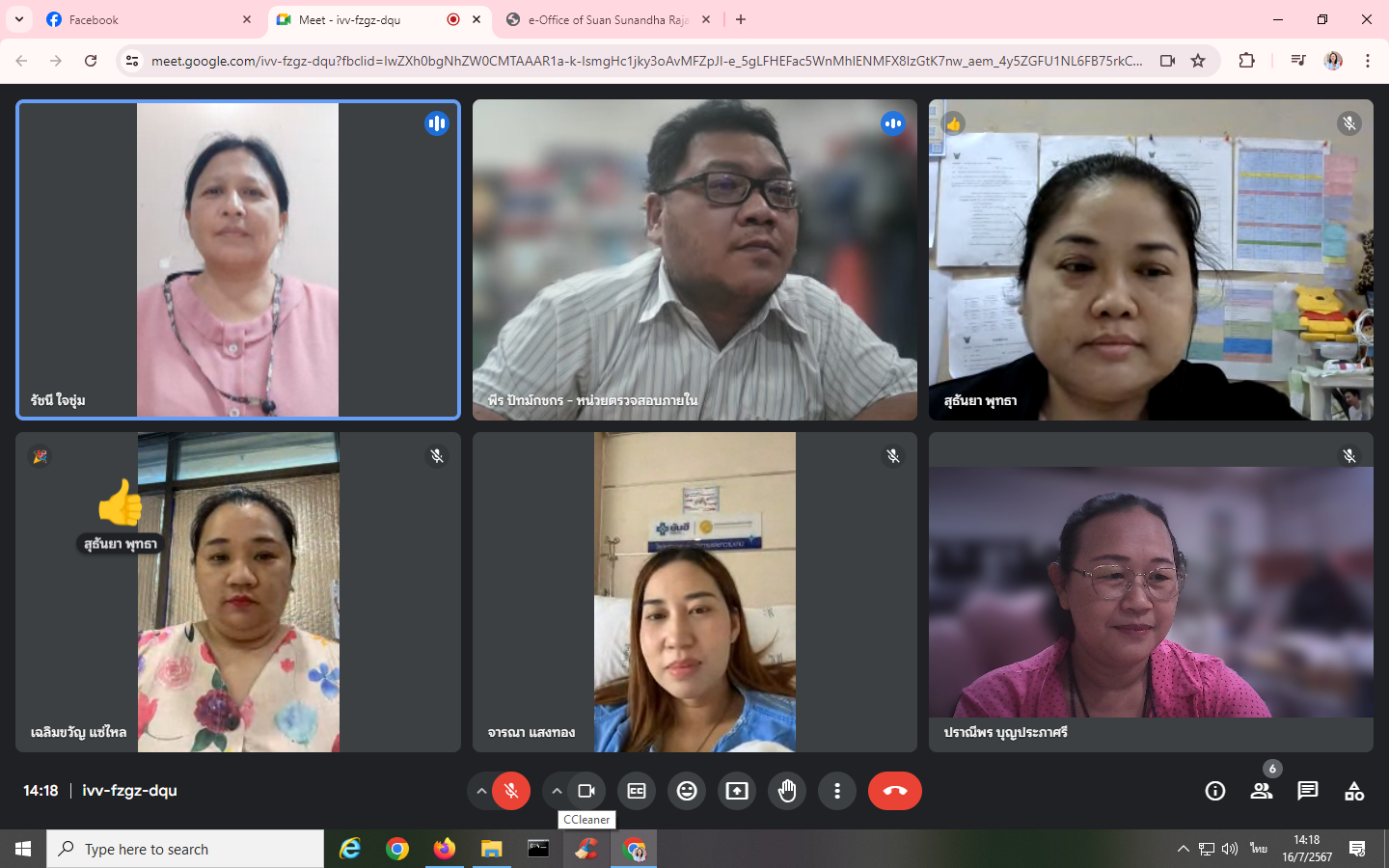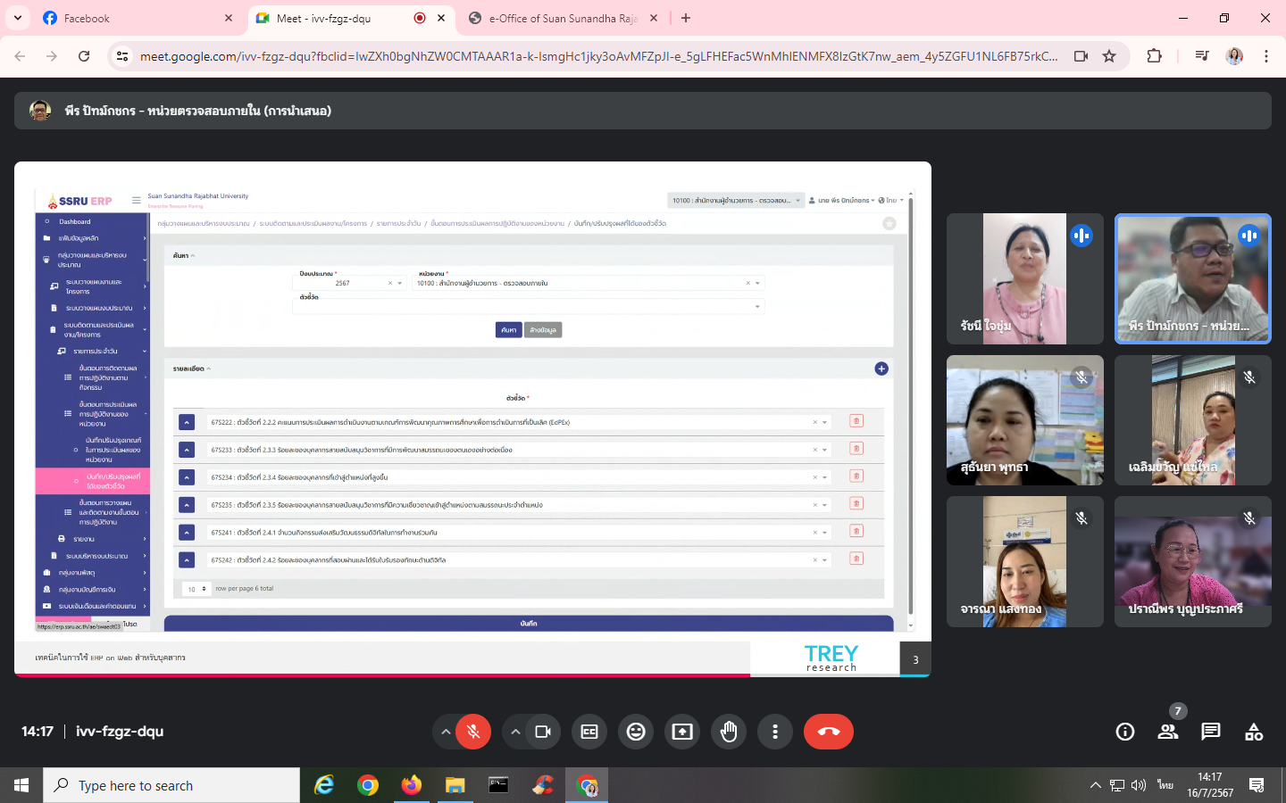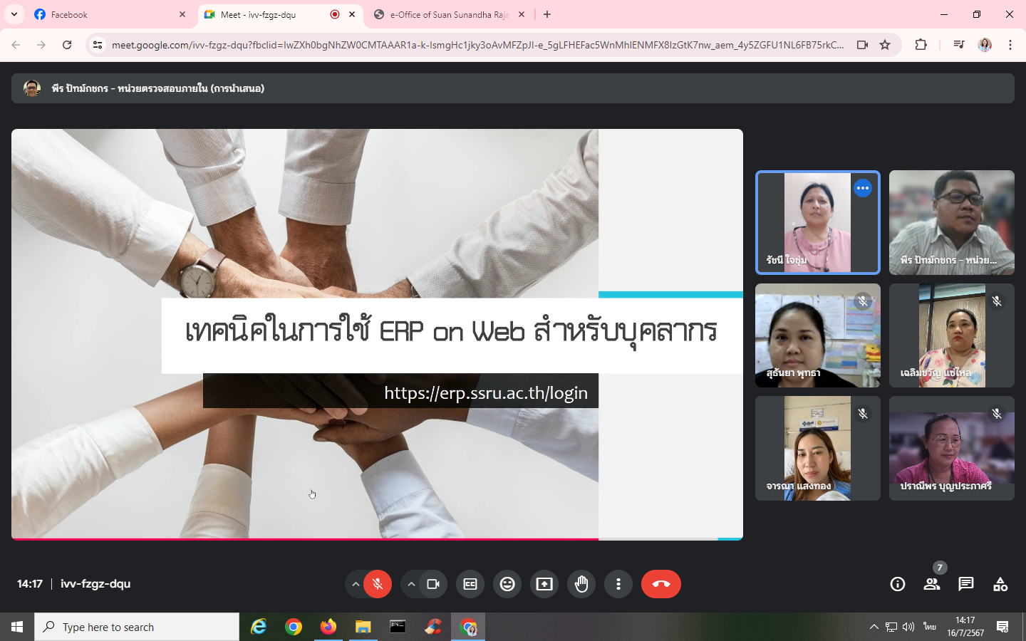 Tuesday, July 16, 2024, Internal Audit Unit personnel attended a training project to develop personnel in the organization to have digital skills and culture for working together. Activity 2 "Techniques for using ERP On Web for personnel" with Mr. Peera Patkotchakorn is a speaker through the online Google Meet system.