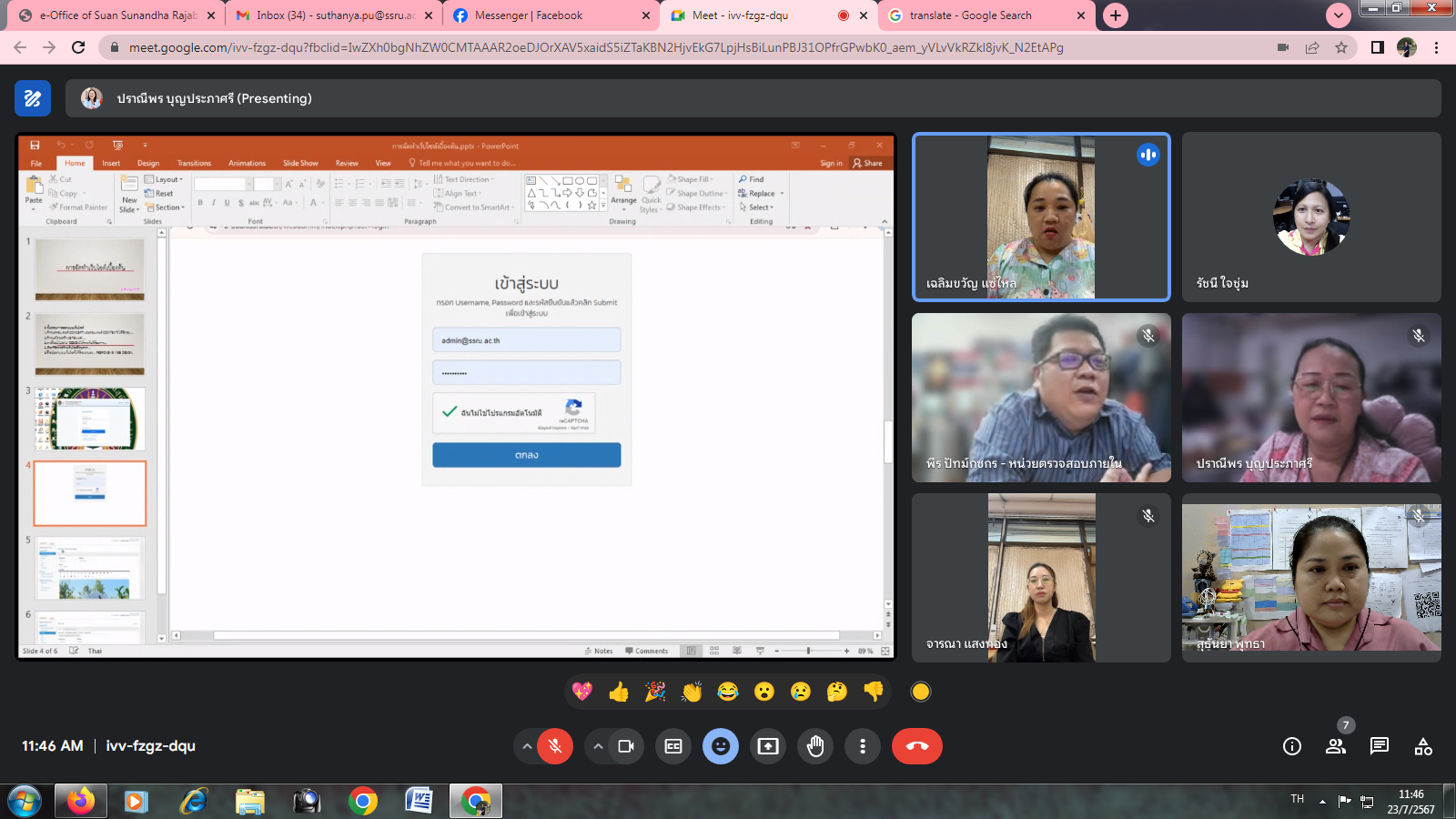 Tuesday 23 July 2024, Internal Audit Unit personnel attended training for the project to develop personnel in the organization to have digital skills and culture for working together. Activity 3 "Basic website creation" with Mrs. Praneepohn Boonprapa. Sri is a speaker through the online Google Meet system.