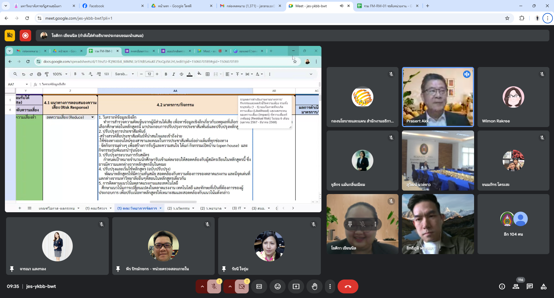 Thursday, December 19, 2024 at 9:00 a.m. Internal Audit Unit personnel Attended a meeting to exchange knowledge on preparing risk management plans. Via the online Google Meet system.