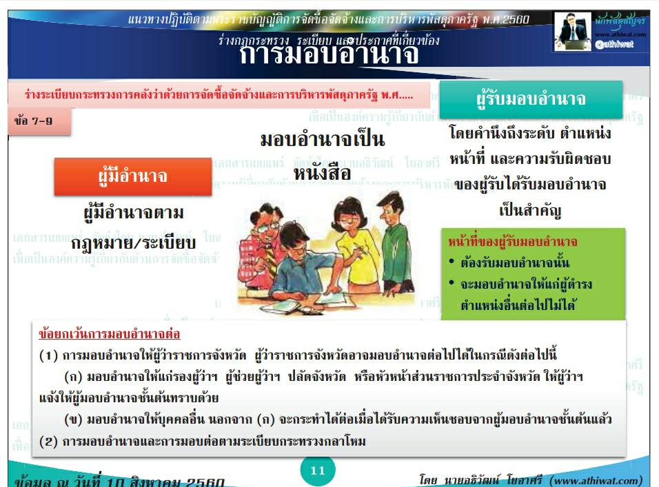 การดำเนินการจัดซื้อจัดจ้าง ตั้งแต่ 23 สิงหาคม2560 ภายใต้ พรบ และระเบียบใหม่ หากหัวหน้าหน่วยงานของรัฐจะมอบอำนาจให้กับผู้ดำรงตำแหน่งต่างๆ จะต้องทำคำสั่งมอบอำนาจใหม่ จะใช้คำสั่งมอบอำนาจเดิมไม่ได้นะครับ