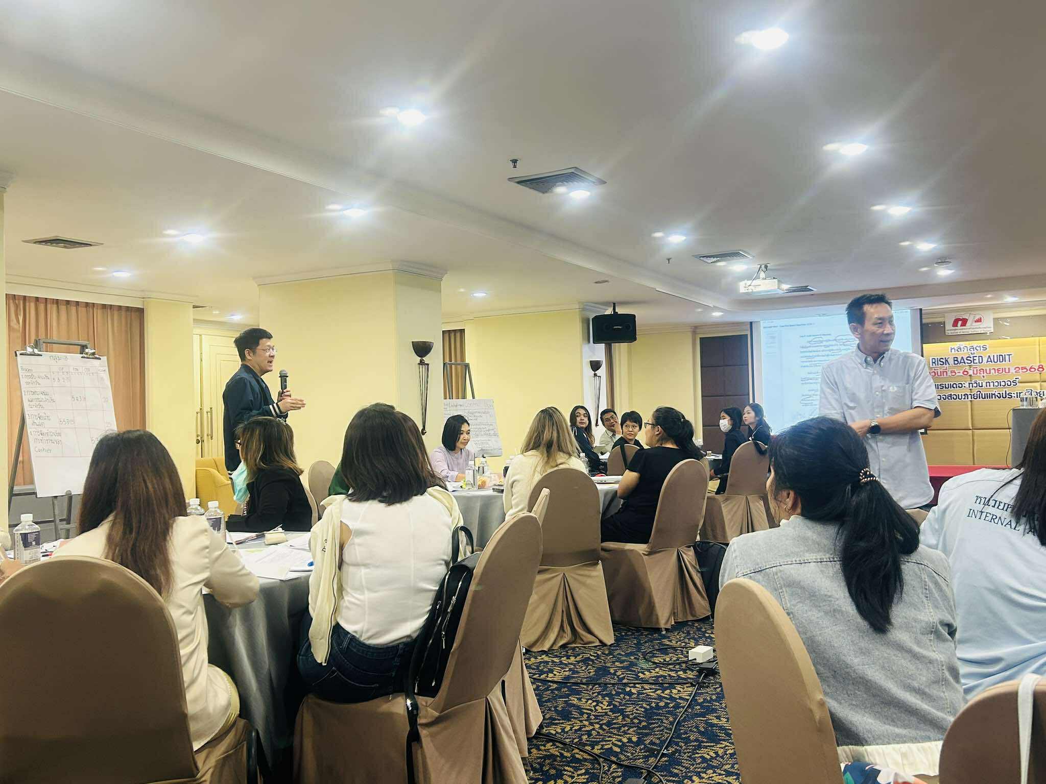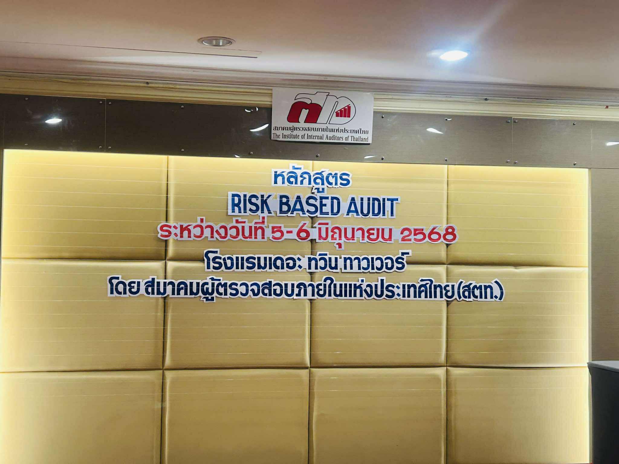 ระหว่างวันที่ 5 - 6 มิถุนายน พ.ศ. 2568 ดร. ณัฐณิชา กลีบบัวบาน หัวหน้าหน่วยตรวจสอบภายใน นางสาวสุธันยา พุทธา และนางสาวเฉลิมขวัญ แซ่ไหล เข้าร่วมอบรม หลักสูตร "การตรวจสอบด้วยระบบการบริหารความเสี่ยง Risk Management Based Auditing" ณ โรงแรม เดอะทวินทาวเวอร์ จัดโดย สมาคมผู้ตรวจสอบภายในแห่งประเทศไทย