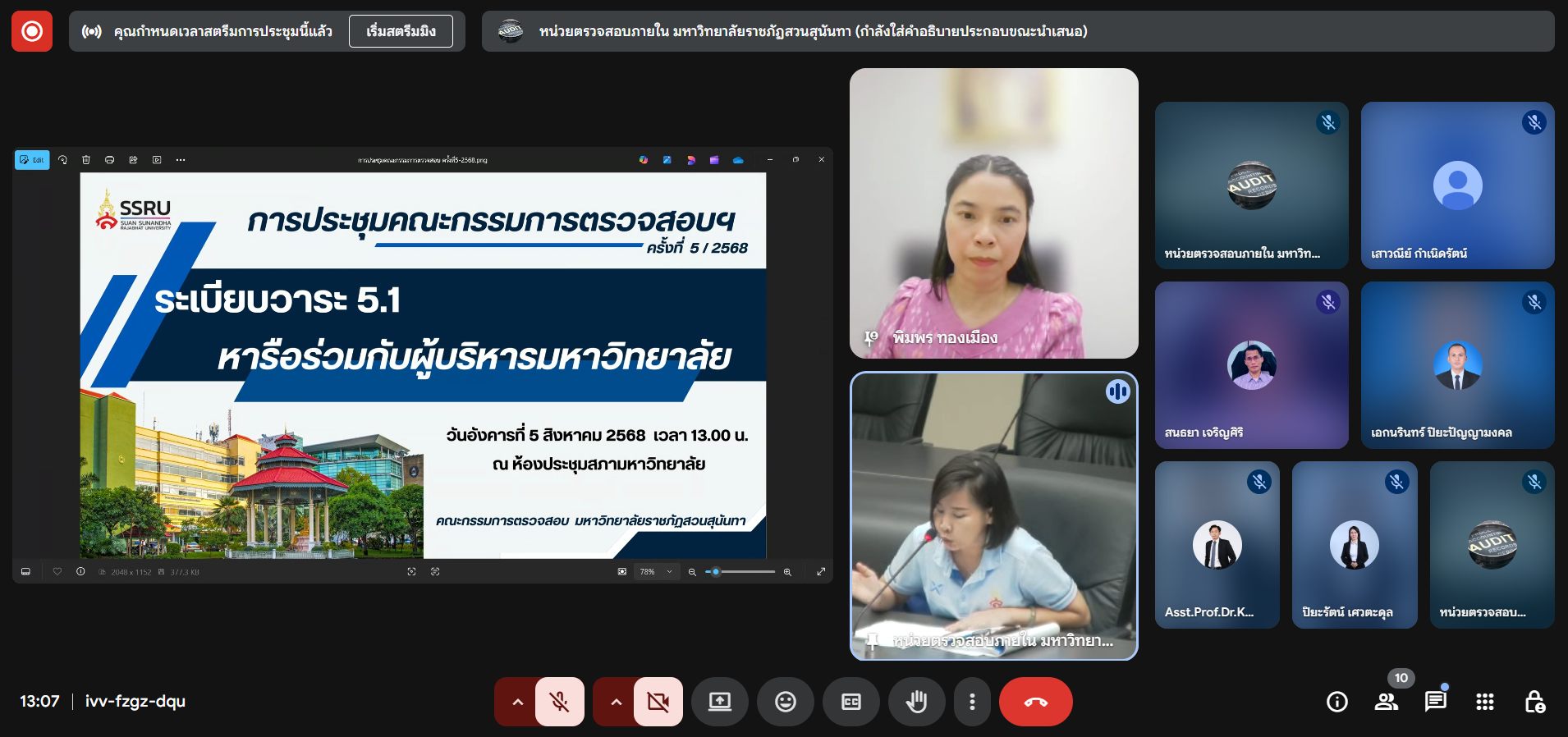 คณะกรรมการตรวจสอบ มหาวิทยาลัยราชภัฏสวนสุนันทา จัดการประชุมคณะกรรมการตรวจสอบฯ ครั้งที่ 5/2568