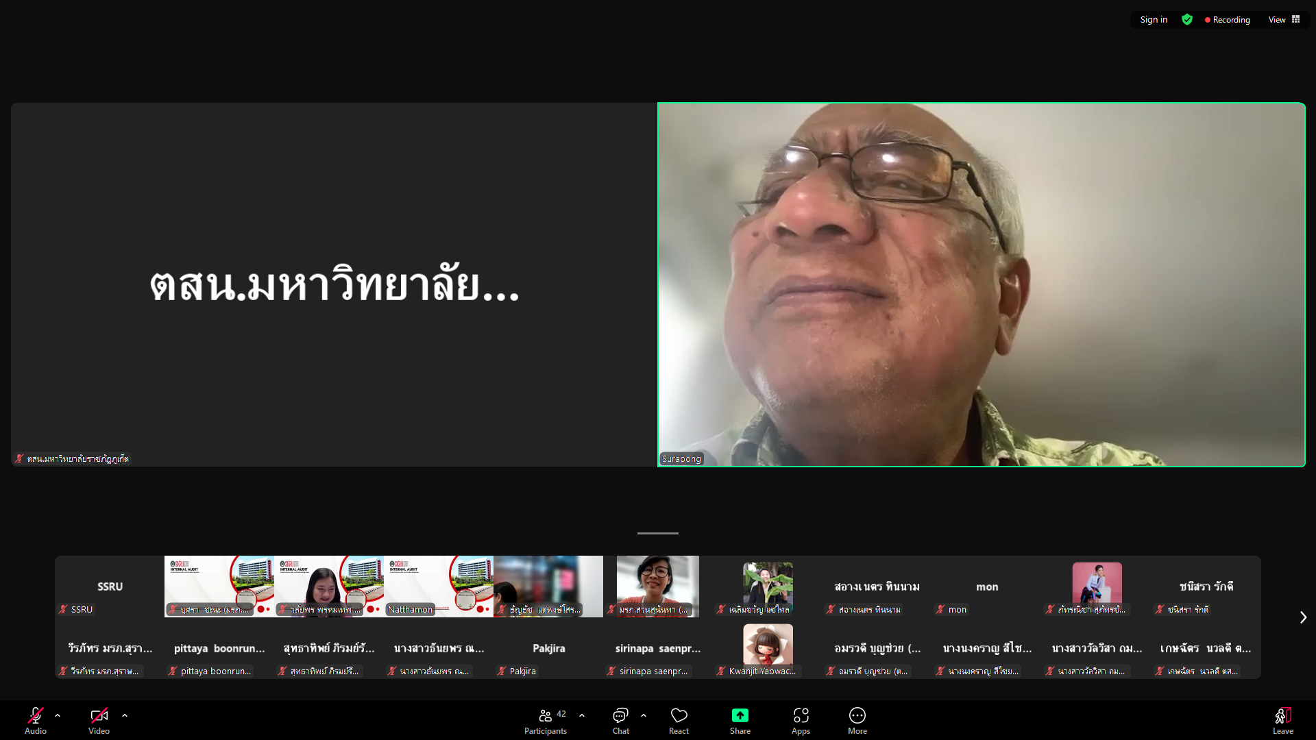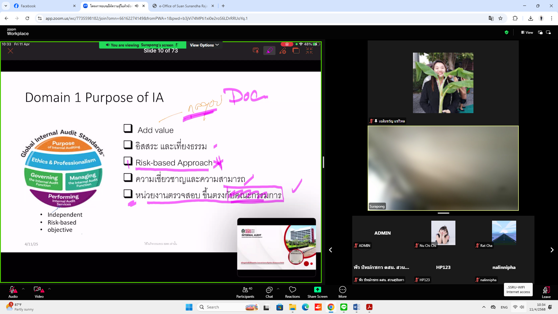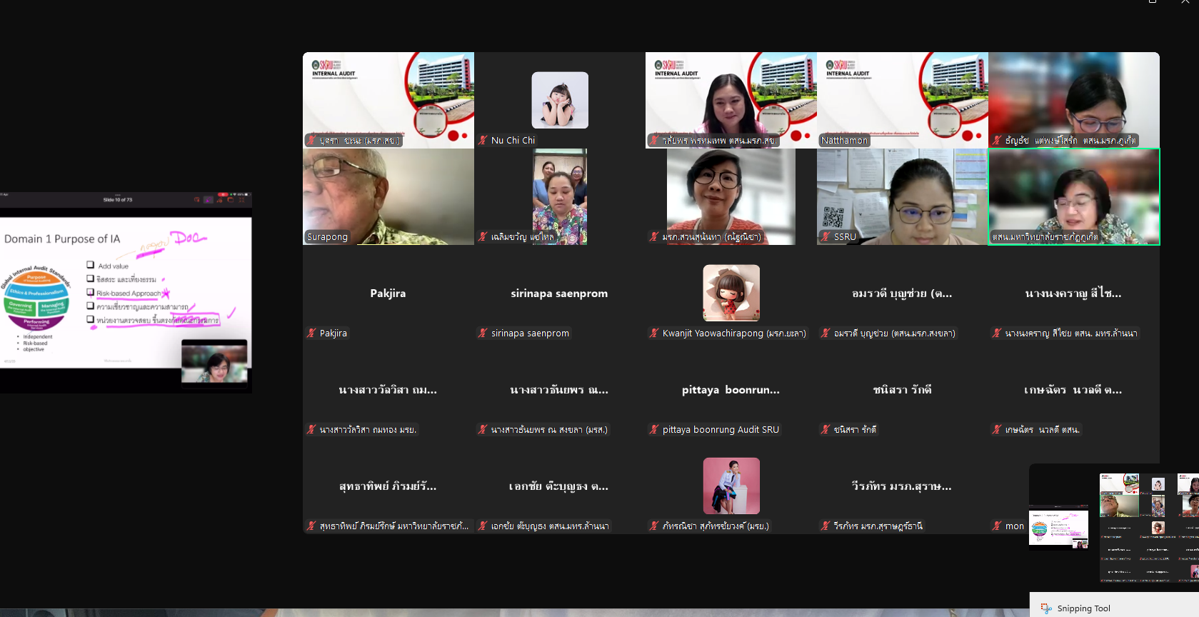 วันศุกร์ที่ 11 เมษายน พ.ศ. 2568 บุคลากรหน่วยตรวจสอบภายในเข้าร่วมอบรม โครงการอบรมเรื่อง "ยกระดับการตรวจสอบภายในตามมาตรฐานใหม่ New IIA's Global Internal Audit Standard 2025" ผ่านระบบออนไลน์ Zoom Meeting จัดโดย หน่วยตรวจสอบภายใน มหาวิทยาลัยราชภัฏสงขลา