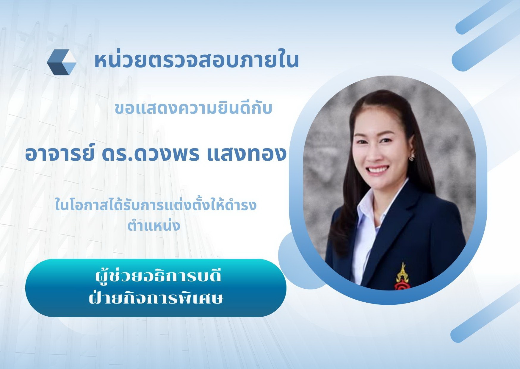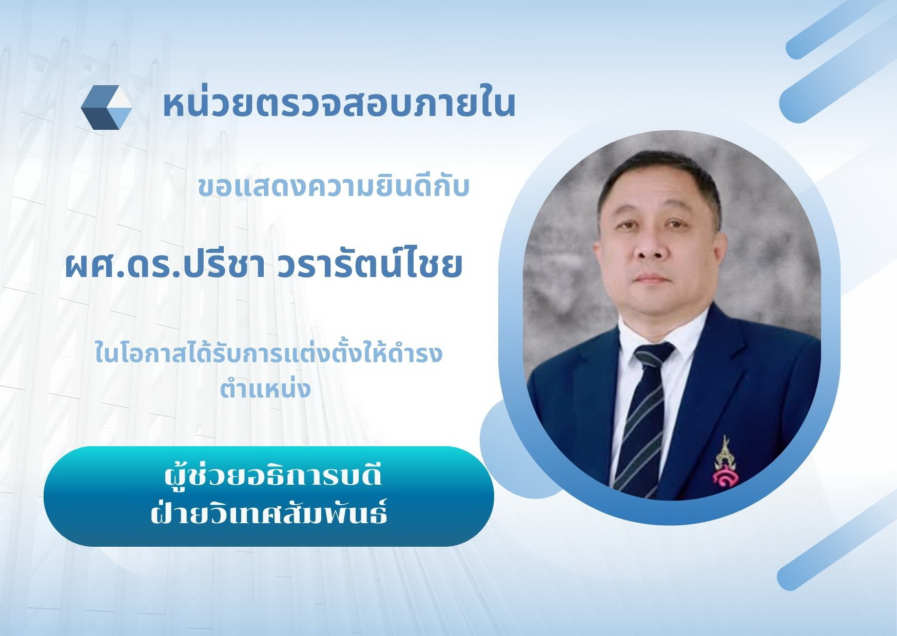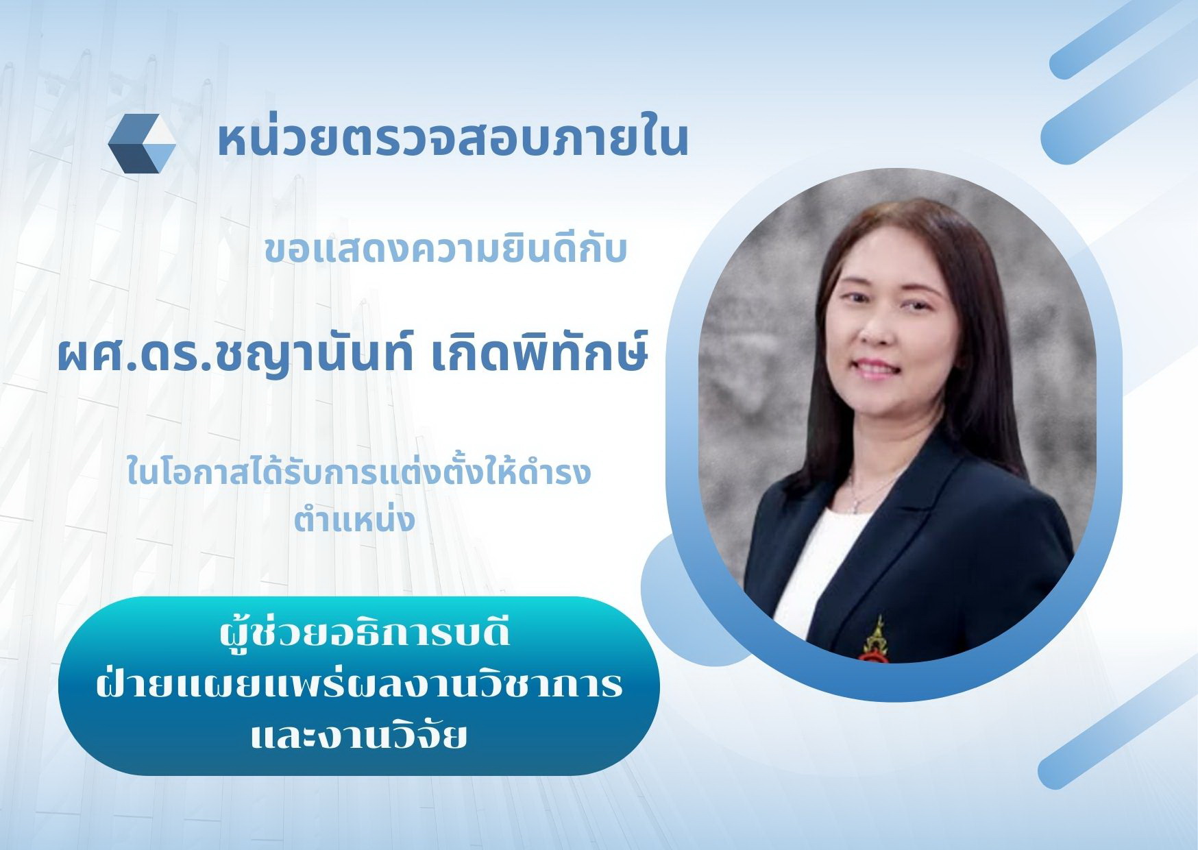 หน่วยตรวจสอบภายในขอแสดงความยินดีกับคณะผู้บริหารในโอกาสได้รับการแต่งตั้งให้ดำรงตำแหน่งผู้ช่วยอธิการบดี