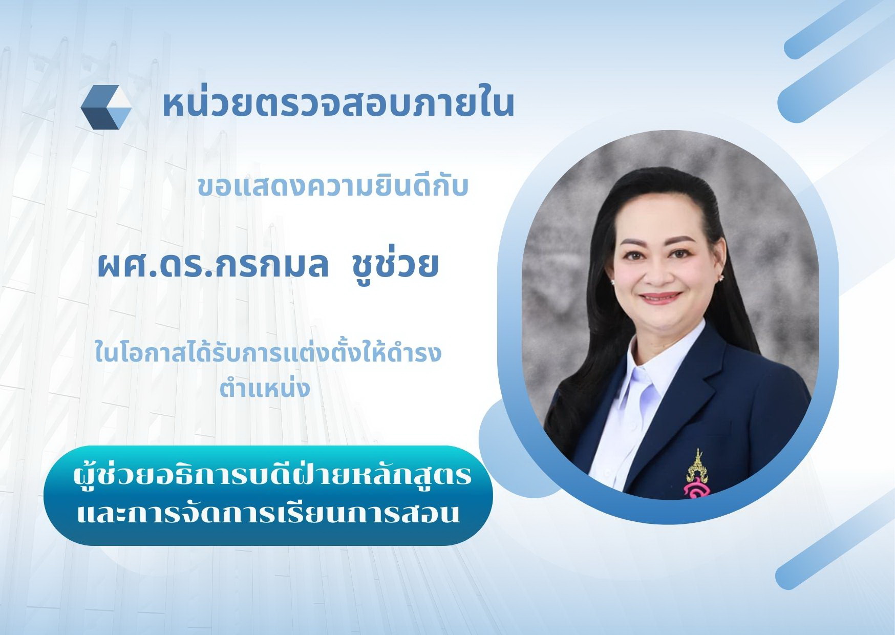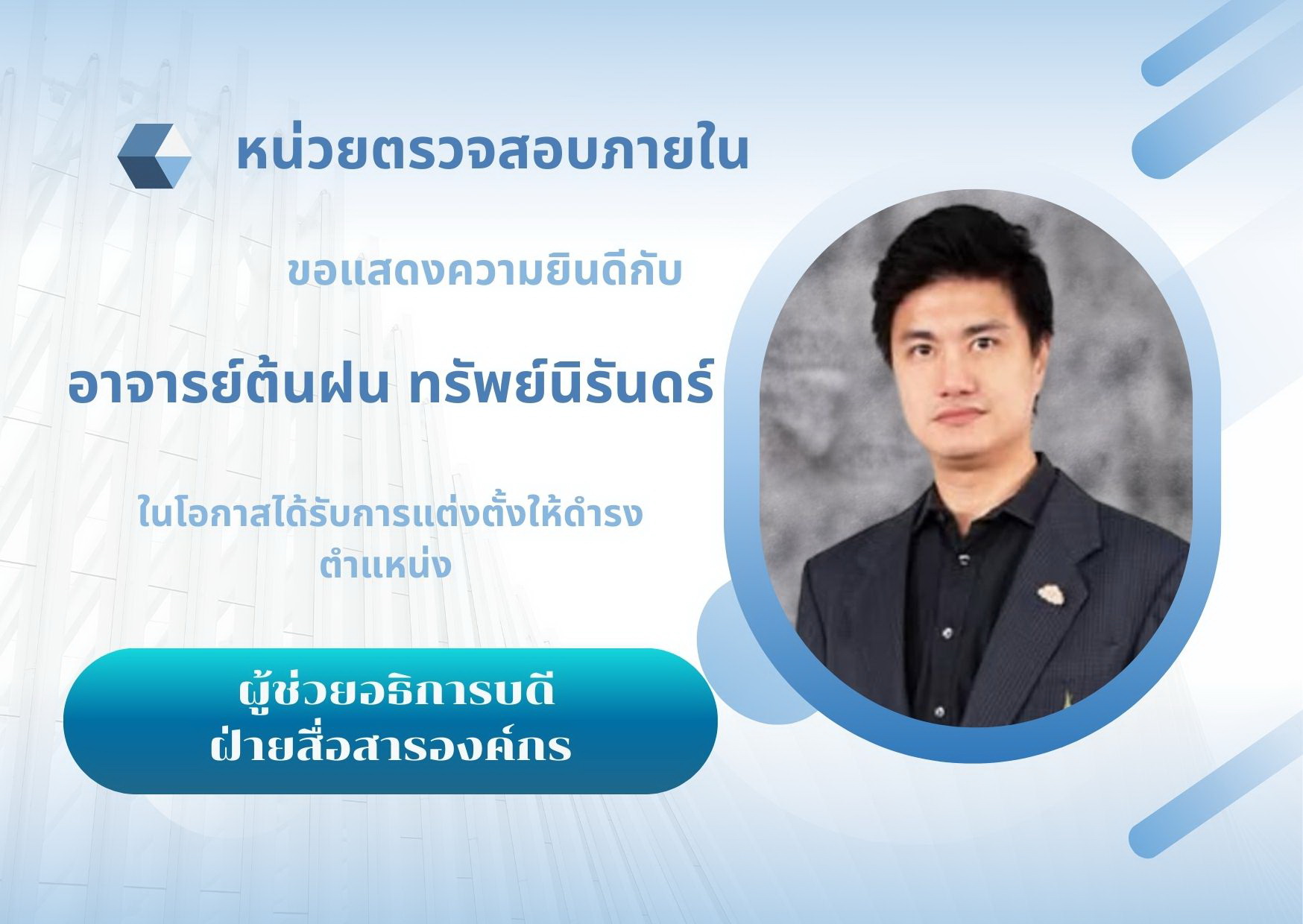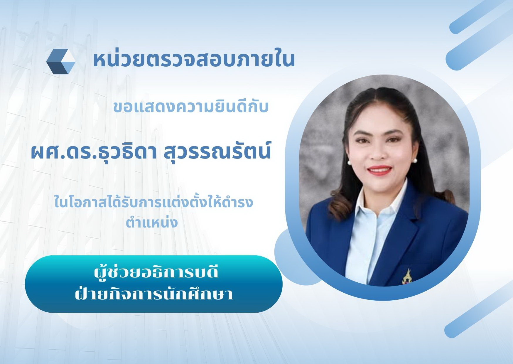 หน่วยตรวจสอบภายในขอแสดงความยินดีกับคณะผู้บริหารในโอกาสได้รับการแต่งตั้งให้ดำรงตำแหน่งผู้ช่วยอธิการบดี