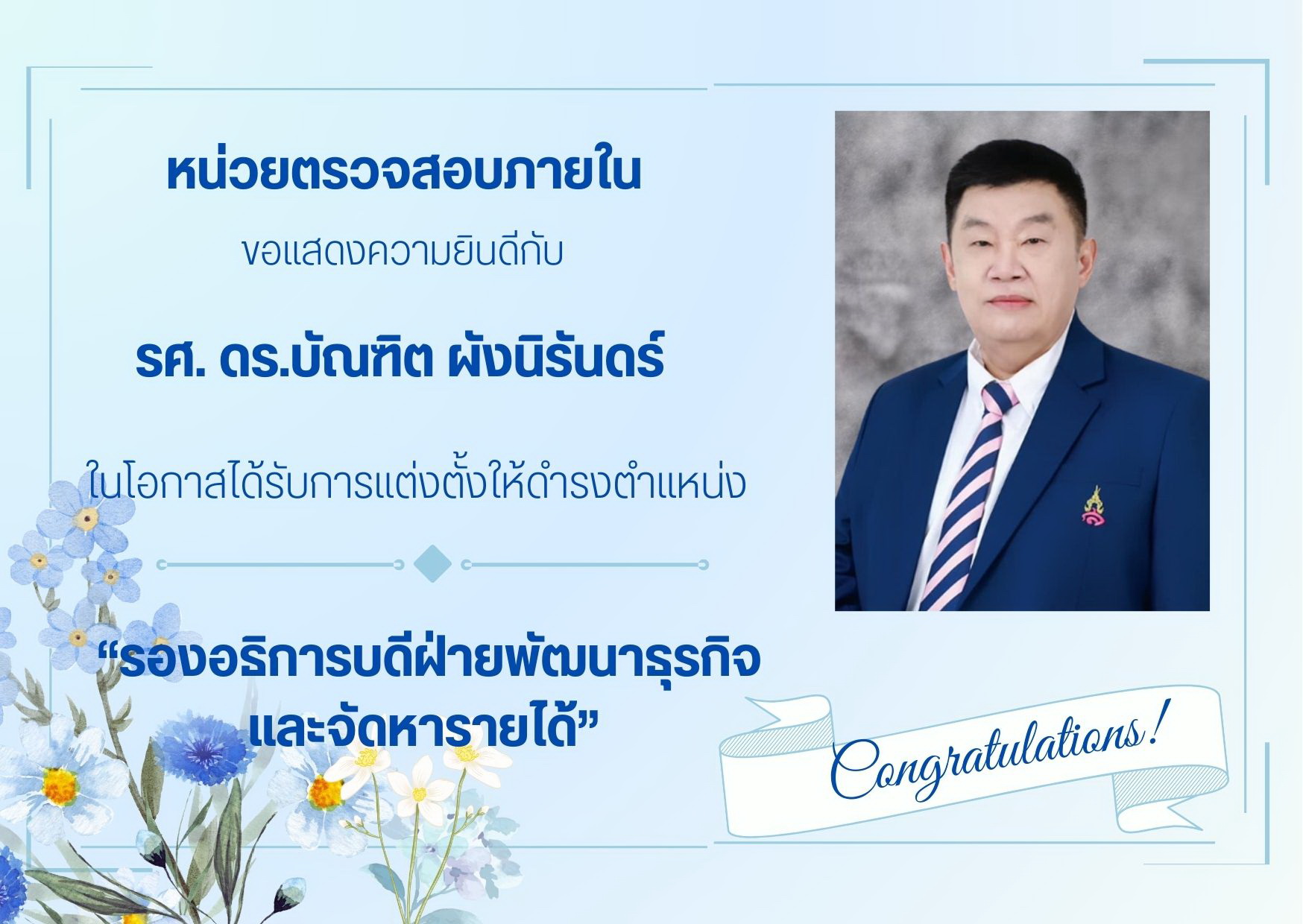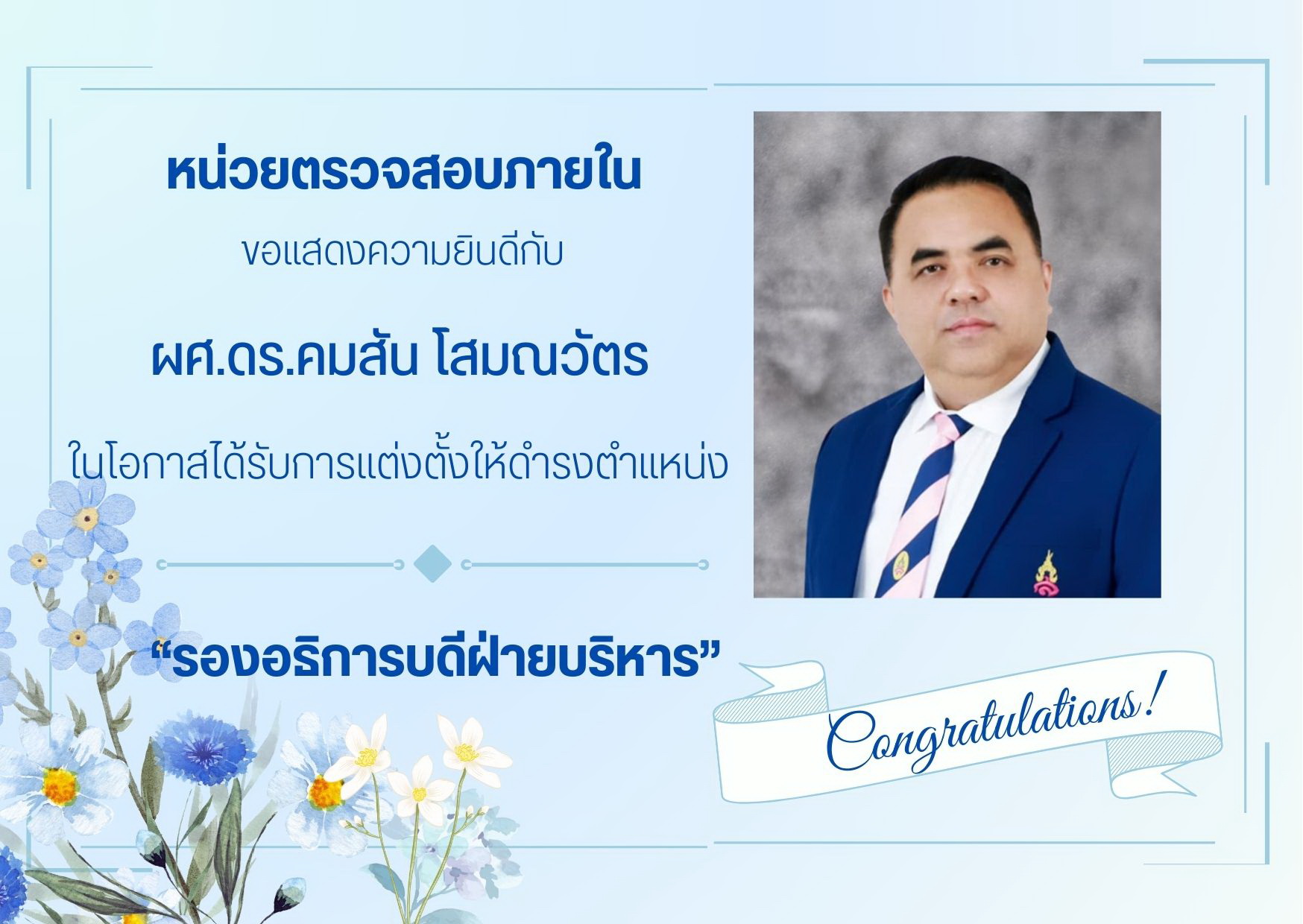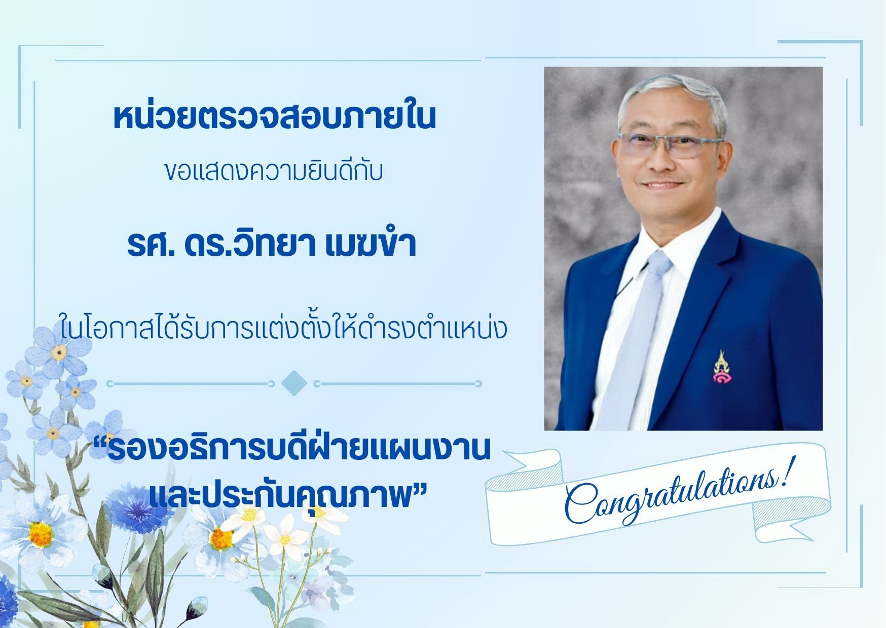 หน่วยตรวจสอบภายในขอแสดงความยินดีกับคณะผู้บริหารในโอกาสได้รับการแต่งตั้งให้ดำรงตำแหน่งรองอธิการบดี
