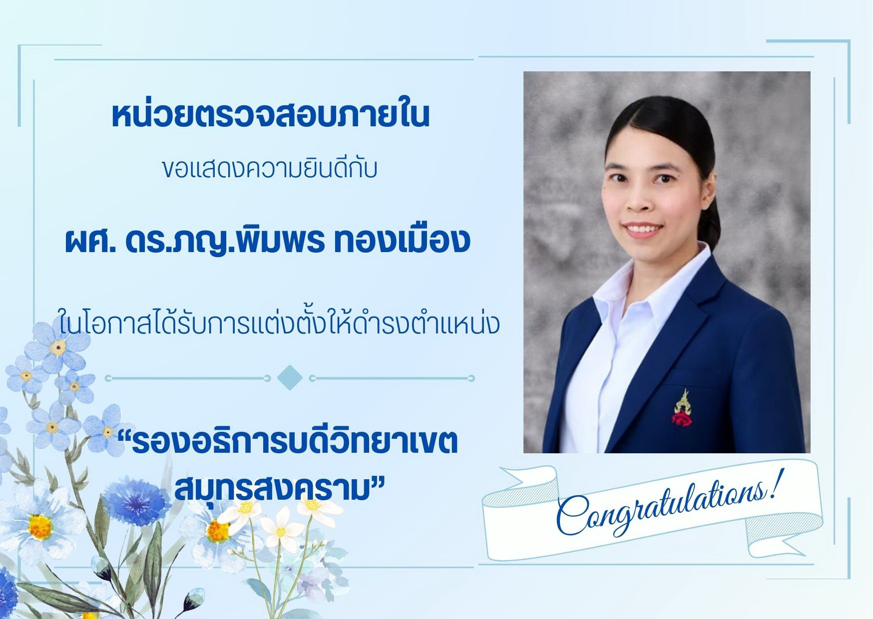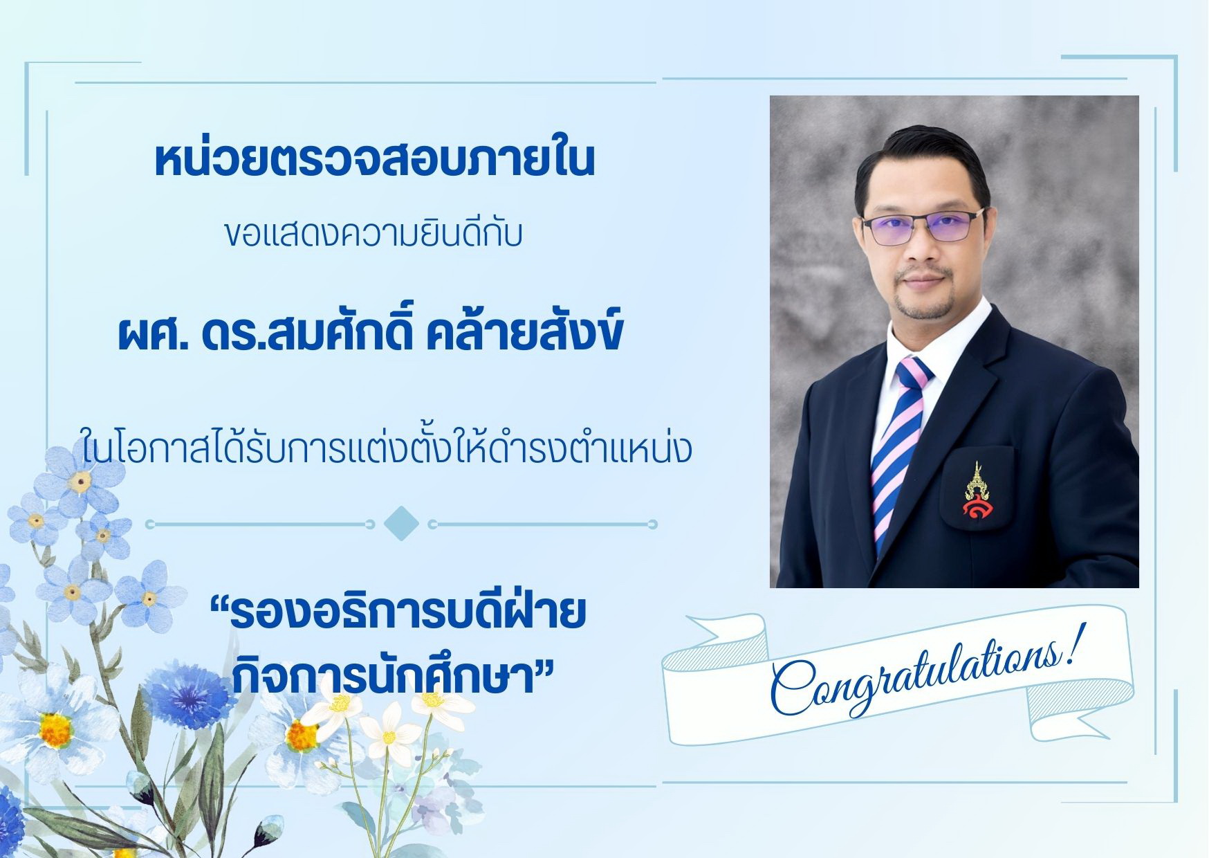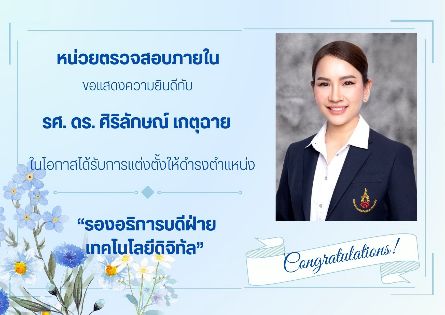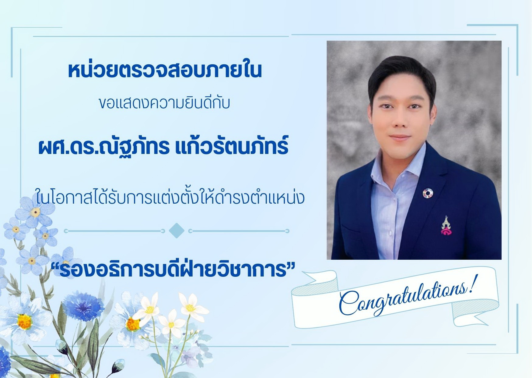 หน่วยตรวจสอบภายในขอแสดงความยินดีกับคณะผู้บริหารในโอกาสได้รับการแต่งตั้งให้ดำรงตำแหน่งรองอธิการบดี