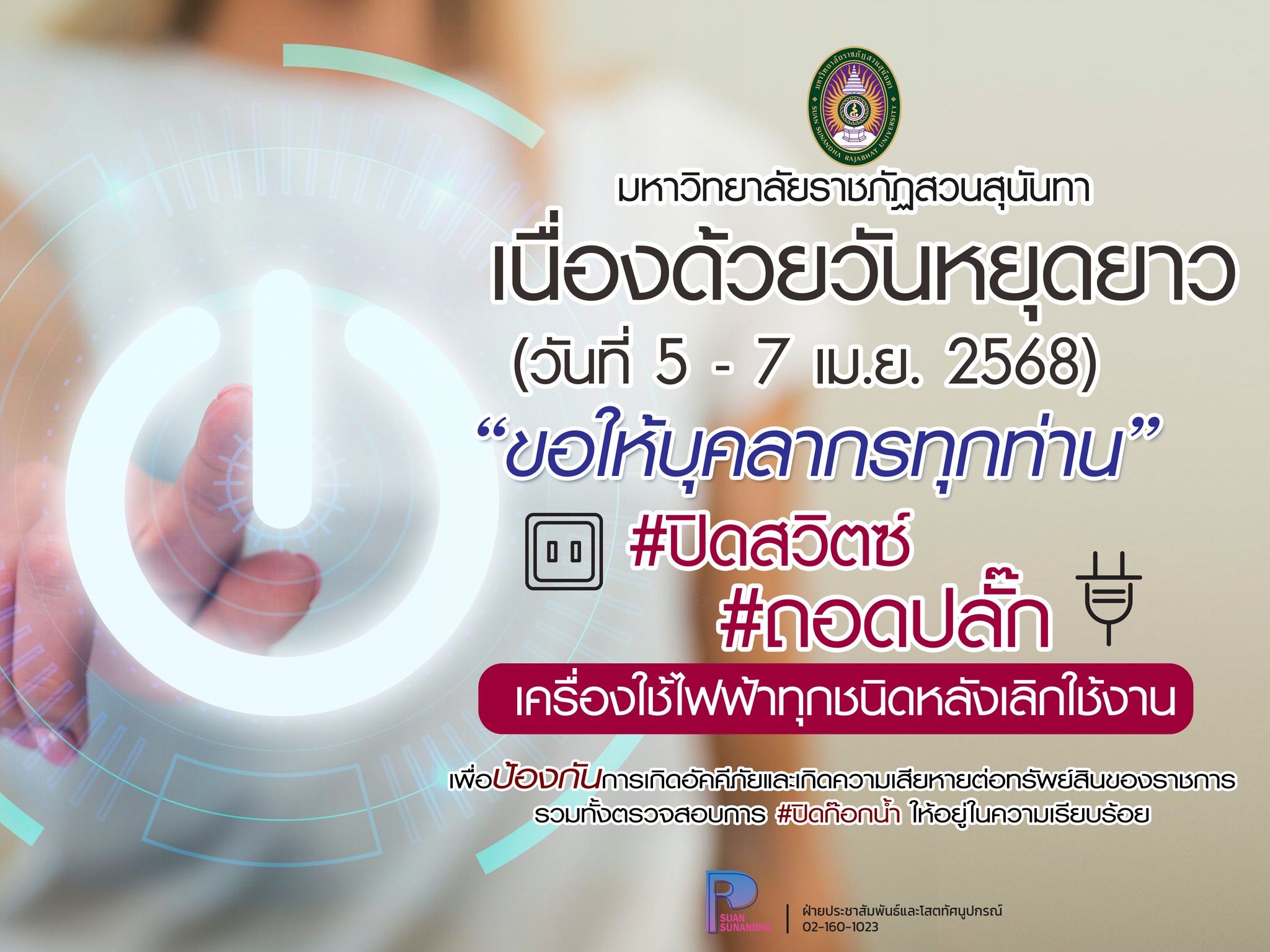 ขอให้บุคลากรทุกท่านปิดสวิตซ์ ถอดปลั๊ก
