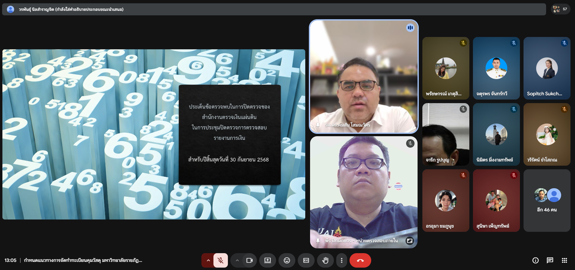 บุคลากรหน่วยตรวจสอบภายใน เข้าร่วมการประชุมเพื่อชี้แจงประเด็นข้อตรวจพบ ของสำนักงานตรวจเงินแผ่นดิน ในการประชุมปิดการตรวจสอบรายงานการเงิน สำหรับปีสิ้นสุด ณ วันที่ 30 กันยายน 2568