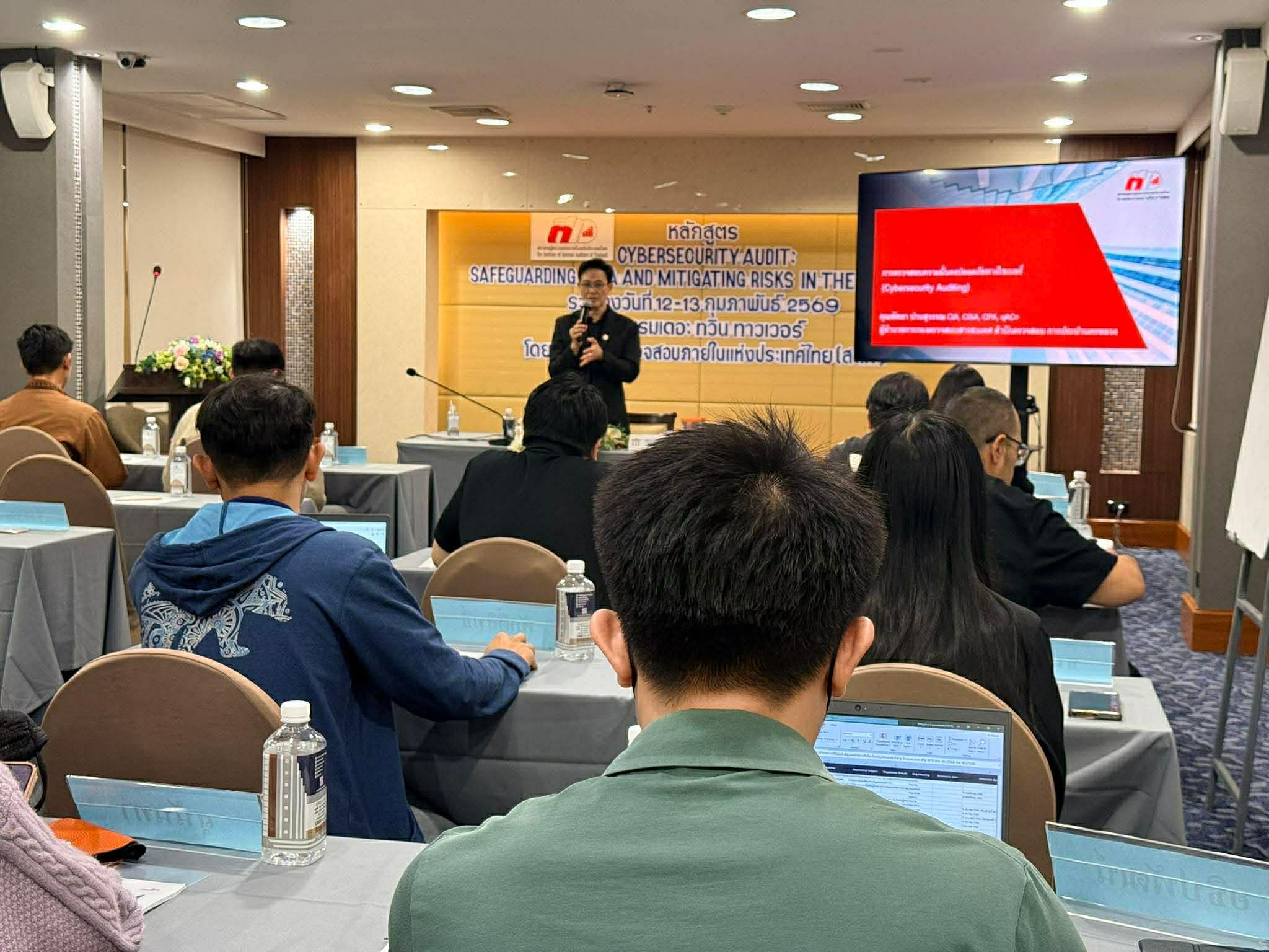 ระหว่างวันที่ 12-13 กุมภาพันธ์ พ.ศ. 2569 นางสาวเฉลิมขวัญ แซ่ไหล นักตรวจสอบภายใน เข้าร่วมอบรมหลักสูตร "Cybersecurity Audit : Safeguarding data and Mitigating Risk in the digital Age" ณ โรงแรม เดอะ ทวินทาวเวอร์ จัดโดย สมาคมผู้ตรวจสอบภายในแห่งประเทศไทย