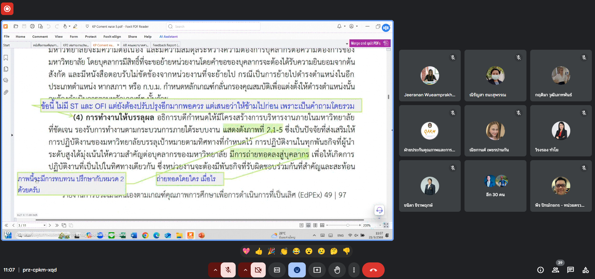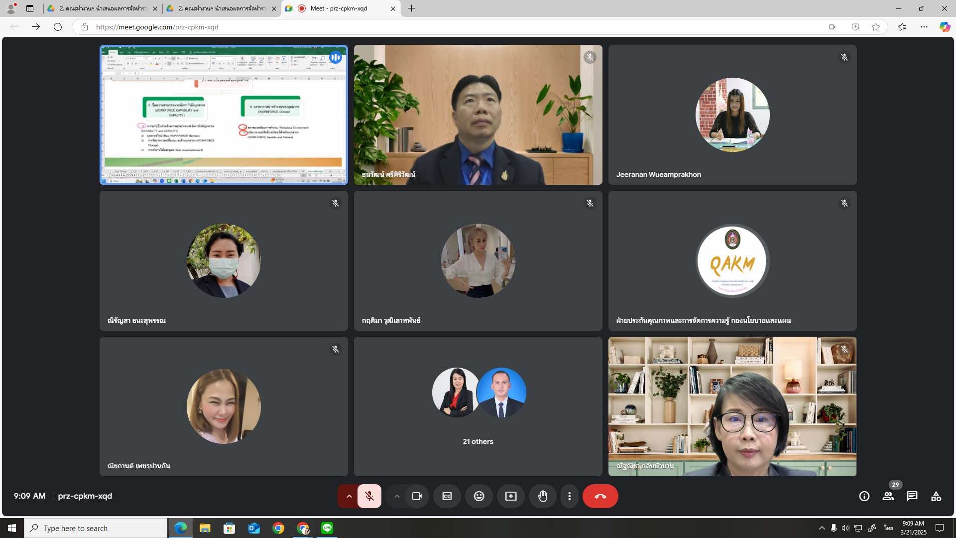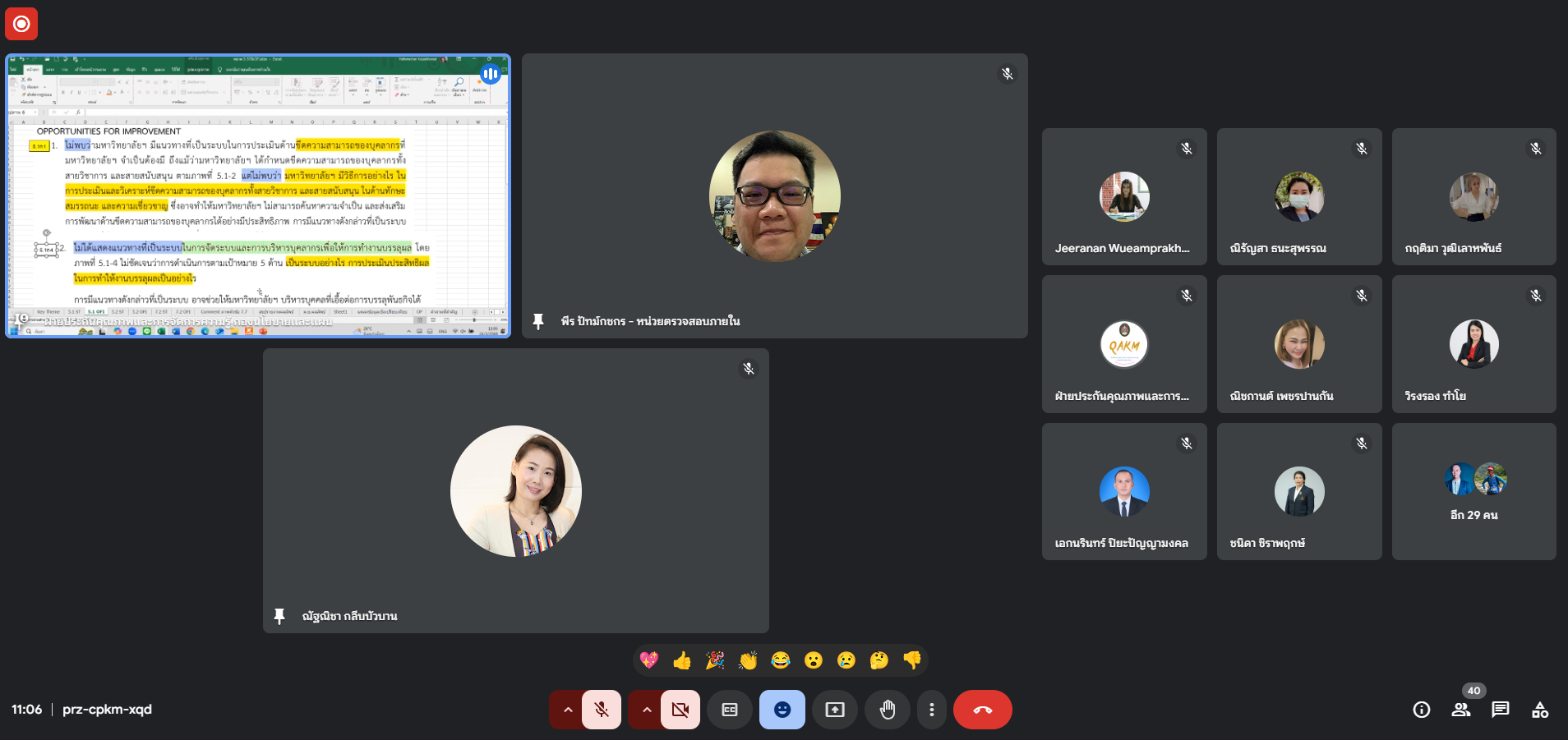 วันศุกร์ที่ 21 มีนาคม พ.ศ. 2568 ดร.ณัฐณิชา กลีบบัวบาน  หัวหน้าหน่วยตรวจสอบภายใน  นายพีร  ปัทม์กชกร  และนางสาวจารณา แสงทอง  เข้าร่วมอบรมหัวข้อหมวดที่ 5 บุคลากร ตามเกณฑ์คุณภาพการศึกษาเพื่อการดำเนินการที่เป็นเลิศ (EdPEx) โดยคณะทำงานฯ นำเสนอผลการจัดทำรายงานที่ปรับปรุง ครั้งที่ 1 ที่ปรึกษาสอบทานและให้ข้อเสนอแนะแนวทางการปรับปรุง  ณ ห้องประชุมสภามหาวิทยาลัย  และระบบออนไลน์