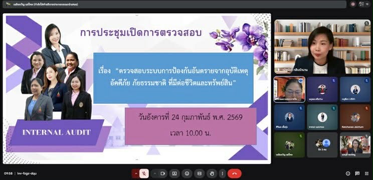 หน้าหลัก > กิจกรรม > กุมภาพันธ์ 2569 > หน่วยตรวจสอบภายใน ประชุมเปิดการตรวจสอบ เรื่อง "ตรวจสอบระบบการป้องกันอันตรายจากอุบัติเหตุ อัคคีภัย ภัยธรรมชาติ ที่มีต่อชีวิตและทรัพย์สิน"