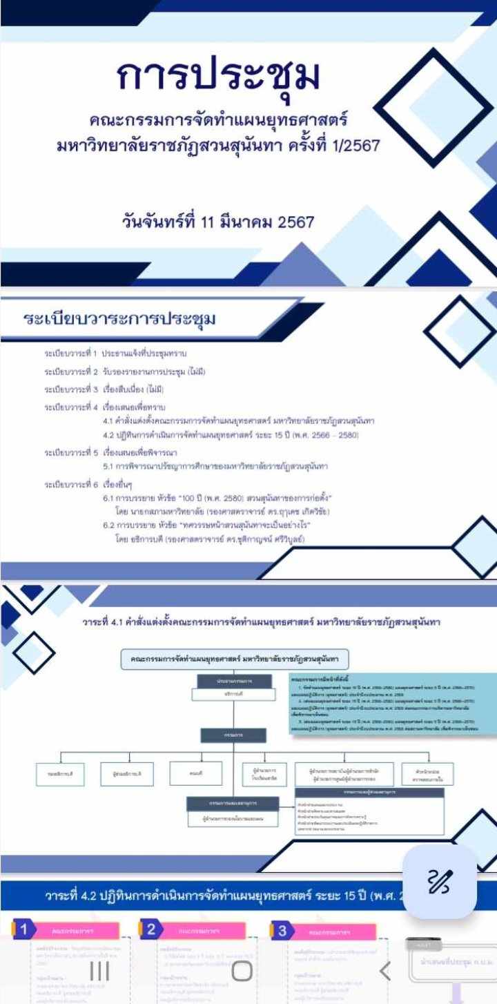 วันจันทร์ที่ 11 มีนาคม พ.ศ. 2567 เวลา 13.00 น. นางปราณีพร บุญประภาศรี หัวหน้าหน่วยตรวจสอบภายใน เข้าร่วมประชุมคณะกรรมการจัดทำแผนยุทธศาสตร์ มหาวิทยาลัยราชภัฏสวนสุนันทา ครั้งที่ 1/2567 ณ ห้องประชุมสภามหาวิทยาลัย ชั้น 5 อาคาร 31