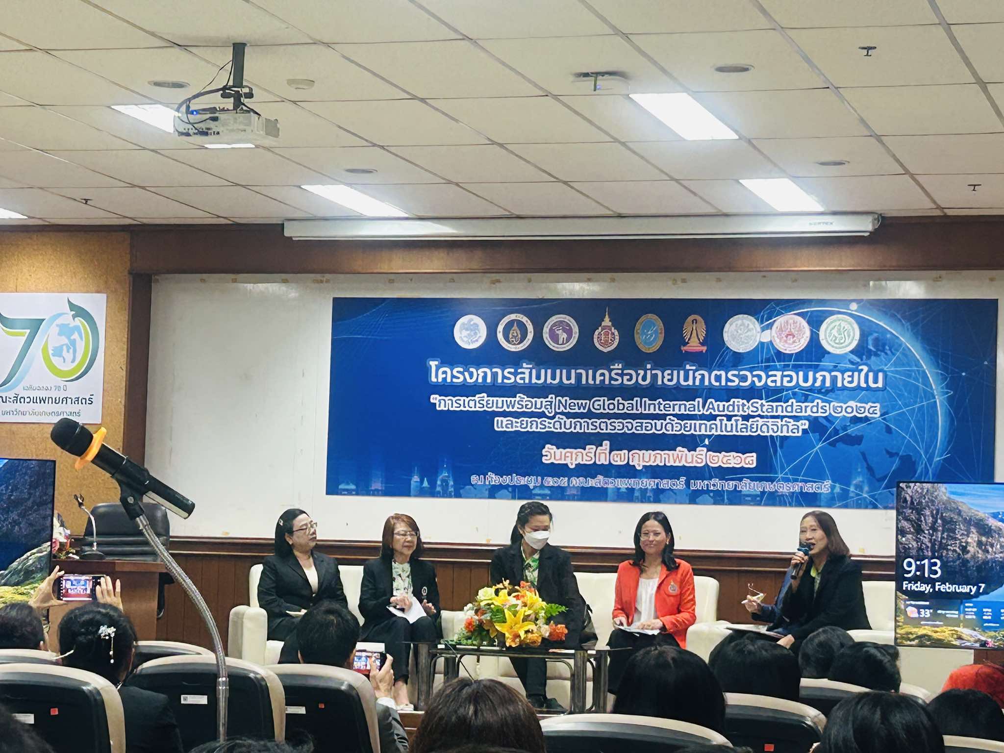 วันศุกร์ที่ 7 กุมภาพันธ์ พ.ศ. 2568 บุคลากรหน่วยตรวจสอบภายในร่วมรับฟังเสวนาโครงการสัมมนาเครือข่ายนักตรวจสอบภายใน โดยมีตัวแทนจากมหาวิทยาลัยที่ผ่านการประเมิน และบุคลากรจากกรมบัญชีกลางเป็นผู้ร่วมเสวนา ณ ห้องประชุม 505 คณะสัตวแพทยศาสตร์ มหาวิทยาลัยเกษตรศาสตร์