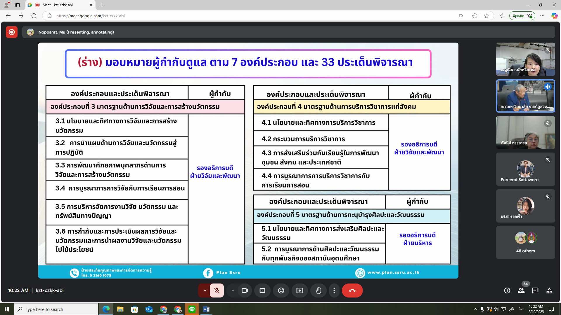 วันจันทร์ที่ 10 กุมภาพันธ์ พ.ศ. 2568 ดร.ณัฐณิชา กลีบบัวบาน รักษาการหัวหน้าหน่วยตรวจสอบภายใน เข้าร่วมประชุมคณะกรรมการบริหารมหาวิทยาลัย ครั้งที่ 2/2568 ผ่านระบบออนไลน์ Google Meet