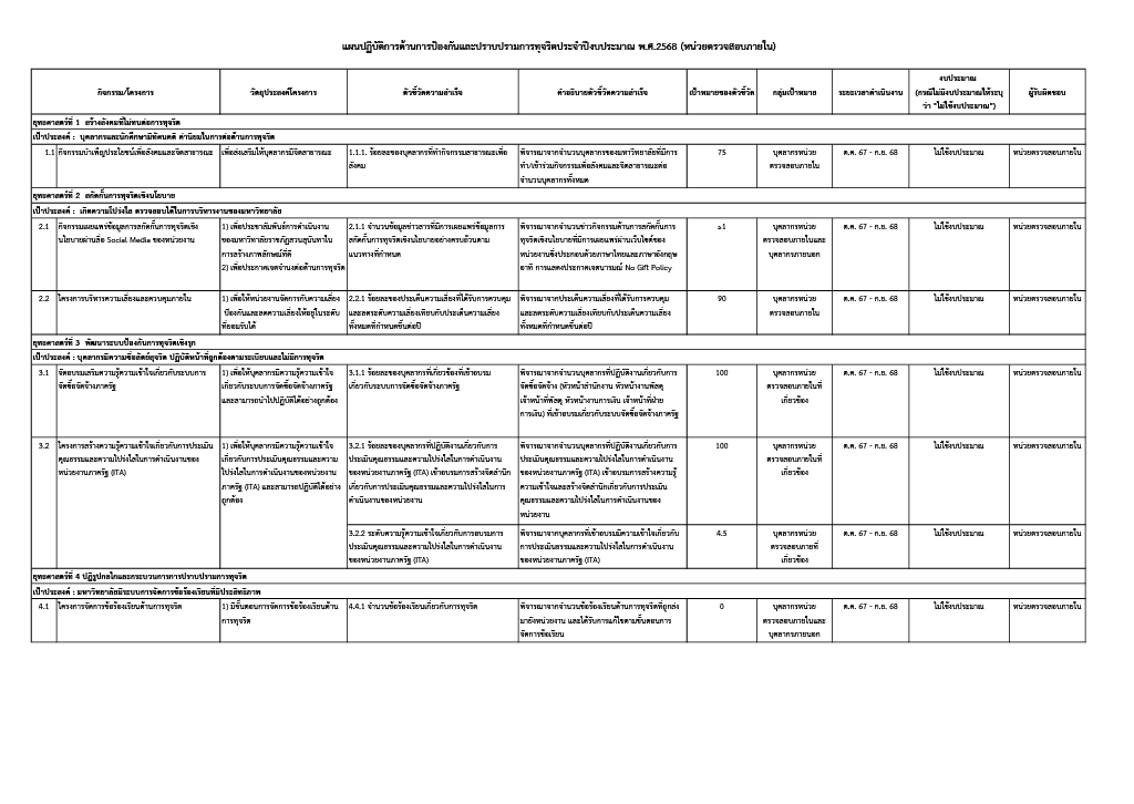 แผนปฏิบัติการด้านการป้องกันและปราบปรามการทุจริต ประจำปีงบประมาณ พ.ศ. 2568
